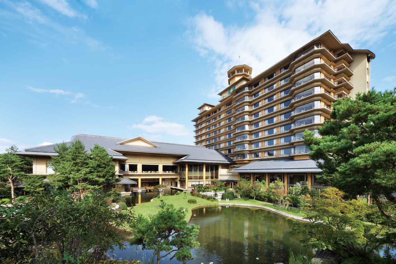 遠くに美しい山々を望み、のどかな田園風景が広がる新潟の名湯・月岡温泉は、国内随一の成分含有量を誇る硫黄泉。エメラルドグリーンの湯色が美しく、「美人の湯」「不老長寿の湯」として有名です。温泉旅館「白玉の湯 華鳳」では、自家源泉の温泉を岩風呂や檜風呂など様々なスタイルで楽しむことができます。
